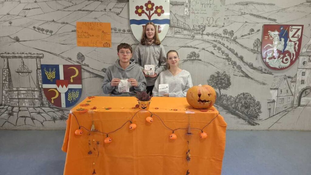 Am 30. und 31. Oktober wurde es an der Mittelschule Zellingen schaurig-süß: Die Klasse 9a verkaufte in den Pausen selbst gepackte Halloween-Tüten – liebevoll dekoriert, bunt gefüllt mit Süßigkeiten und mit viel Herz vorbereitet.